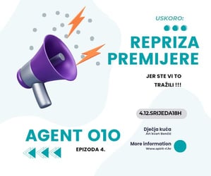 Na brojne upite odlučili smo odgovoriti novom projekcijom! Oni koji još nisu i oni koji žele ponovno vidjeti najnoviju epizodu TAJNI AGENT 010- Apokalipsa Wow, imati će prilike to uraditi u DJEČJOJ KUĆI u Benčiću, četvrtak 22.1. u 18h. S obzirom da ima samo 70 mjesta REZERVACIJA JE OBAVEZNA OVDJE-> ujedno molimo sve koji dolaze sa KOLICIMA, da nas obavijeste mejlom kako bi osigurali mjesta za vas. Ujedno pripremamo vam, osim filma, još jedno iznenađenje ;-) Donacija nije obavezna, ali će pomoći u našem daljnjem radu. Hvala.