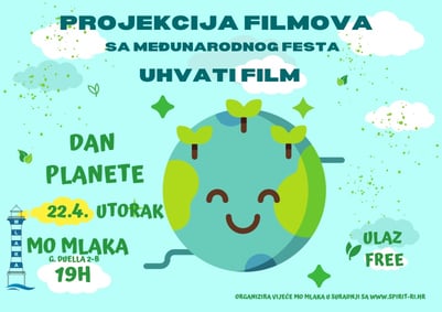 DAN PLANETE projekcija filmova sa festa UHVATI FILM, prikazat ćemo nekoliko odličnih filmova koji se tiču prirode i odnosa koji čovjek ima s prirodom. 22.4. utorak, MO MLAKA 19h dobrodošli