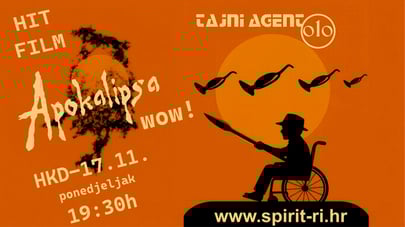 Nakon što ste odgledali "zagrijavanje" prve tri epizode Tajnog Agenta 010, pripremamo vam veliku premijeru novog - glanc ispod čekića, filma APOKALIPSA Woow! To je peta epizoda, a zajedno s njom zavrtit ćemo i četvrtu iz prošle godine. znači, ukupno sat i pol zanimljivog programa i veliko iznenađenje. Našli smo rješenje za PRAZNOSTOLICITIS riječke kulture i velikodušno dajemo STO DOLARA za prvi STO posjetitelja ! Pokušavamo nagovoriti Vladu da odvida nekoliko šarafa od tenkova za riječku kulturu, no, ako im šarafi budu prejako zavidani, mi ćemo se sami potruditi da ti dolari budu konvertibilni. Kako? Mi smo Spirit, ne brinite, dođite i zabavite se! posjetite naš YouTube KANAL