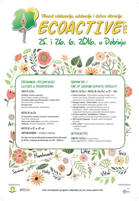 2015. Lipanj, ECOACTIVE drugi Festival zdravog načina življenja održan je ponovno na Krku pored Dobrinja sa desetak uključenih programa (Taichi, Yoga, DreamDance, 5ritmova, Gong, Vege hrana; filmske večeri...), a novost je uvođenje preddogađanja. Već od mjeseca Ožujka skoro svaki vikend približavali smo se Festu predstavljanjem pojedinačnih programa čime je porastao broj vansezonskih aktivnosti na otoku, ali i "zagrijana" publika za centralnidio Festivala. Osim u Dobrinju, gostovali smo u Puntu i Krku. U Puntu uz podršku općine i TZ, održali smo i prvomajski MINi EcoActive Fest, koji je sadržavao radionicu zdrave hrane, Meditativni ples, dva predavanja i filmsku večer.